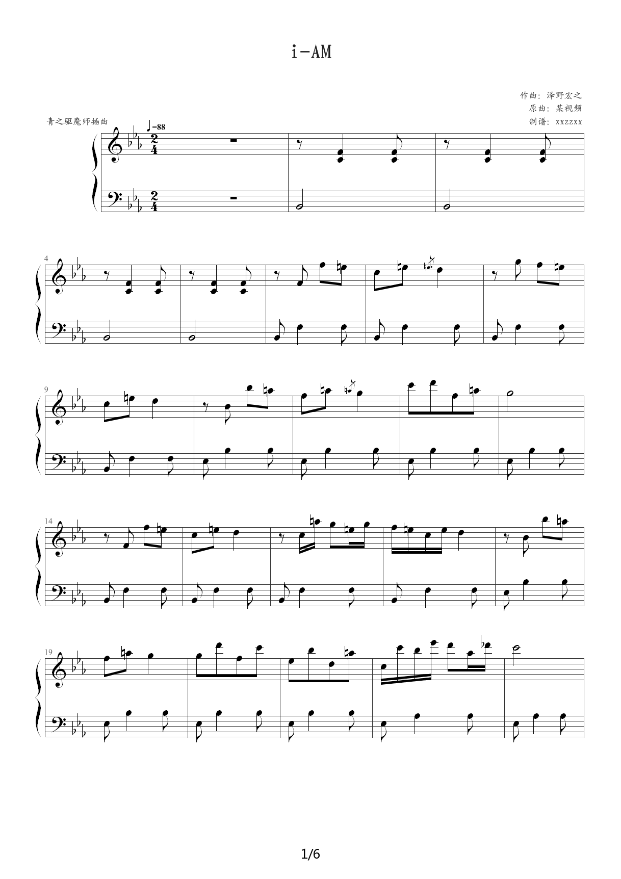 > i AM 青之驱魔师插曲 降E调