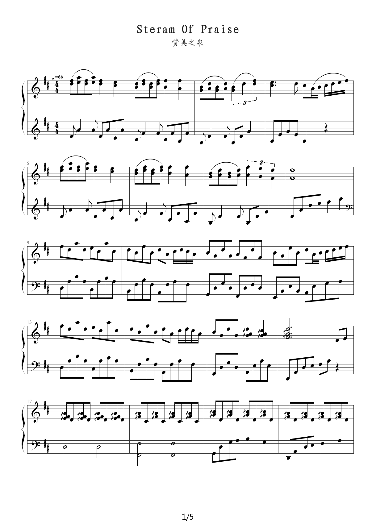 - [钢琴谱] 赞美之泉