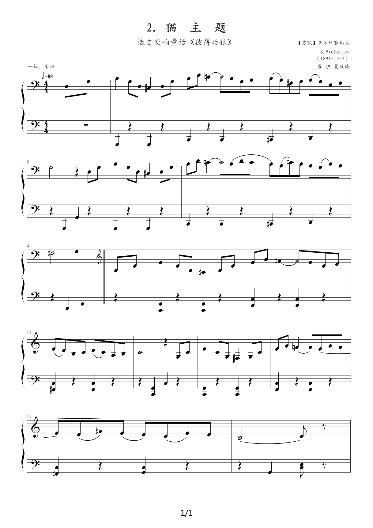 > 中央音乐学院钢琴 业余 考级教程一级 06 猫主题 C调