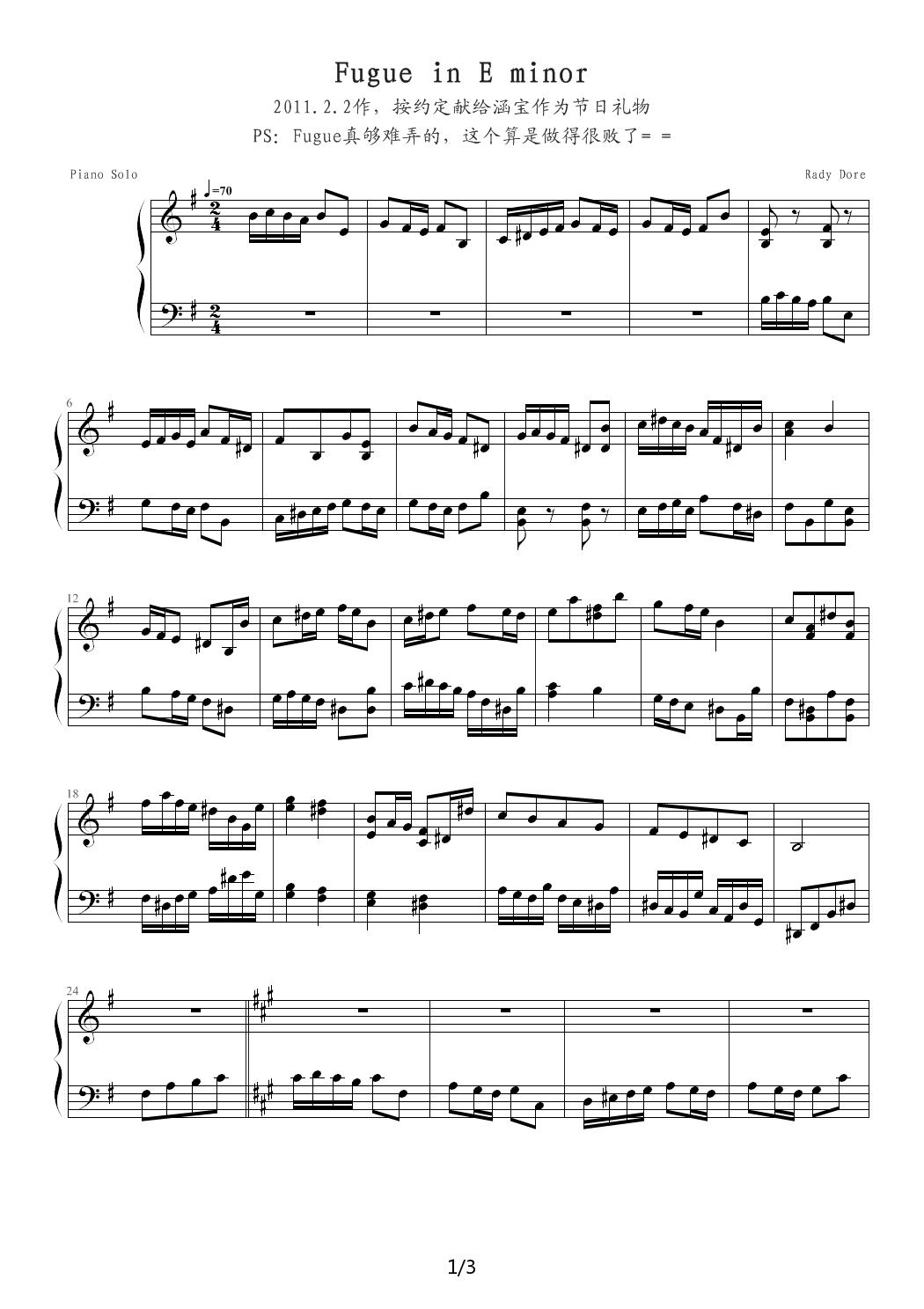 > Fugue in E minor G调