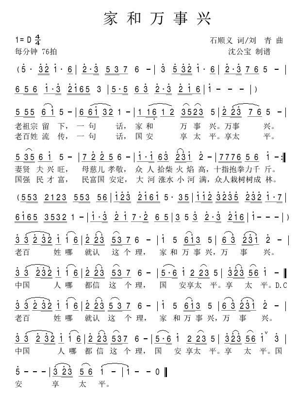 - [歌谱] 家和万事兴 郁钧剑 张也