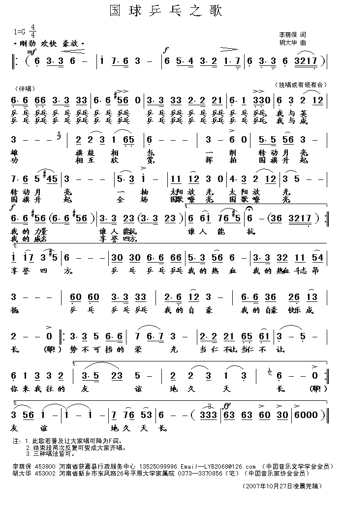 - [歌谱] 国球进行曲