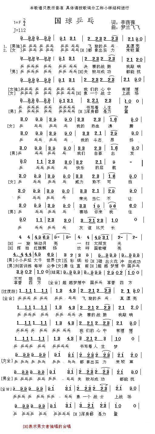 - [歌谱] 乒乓迷