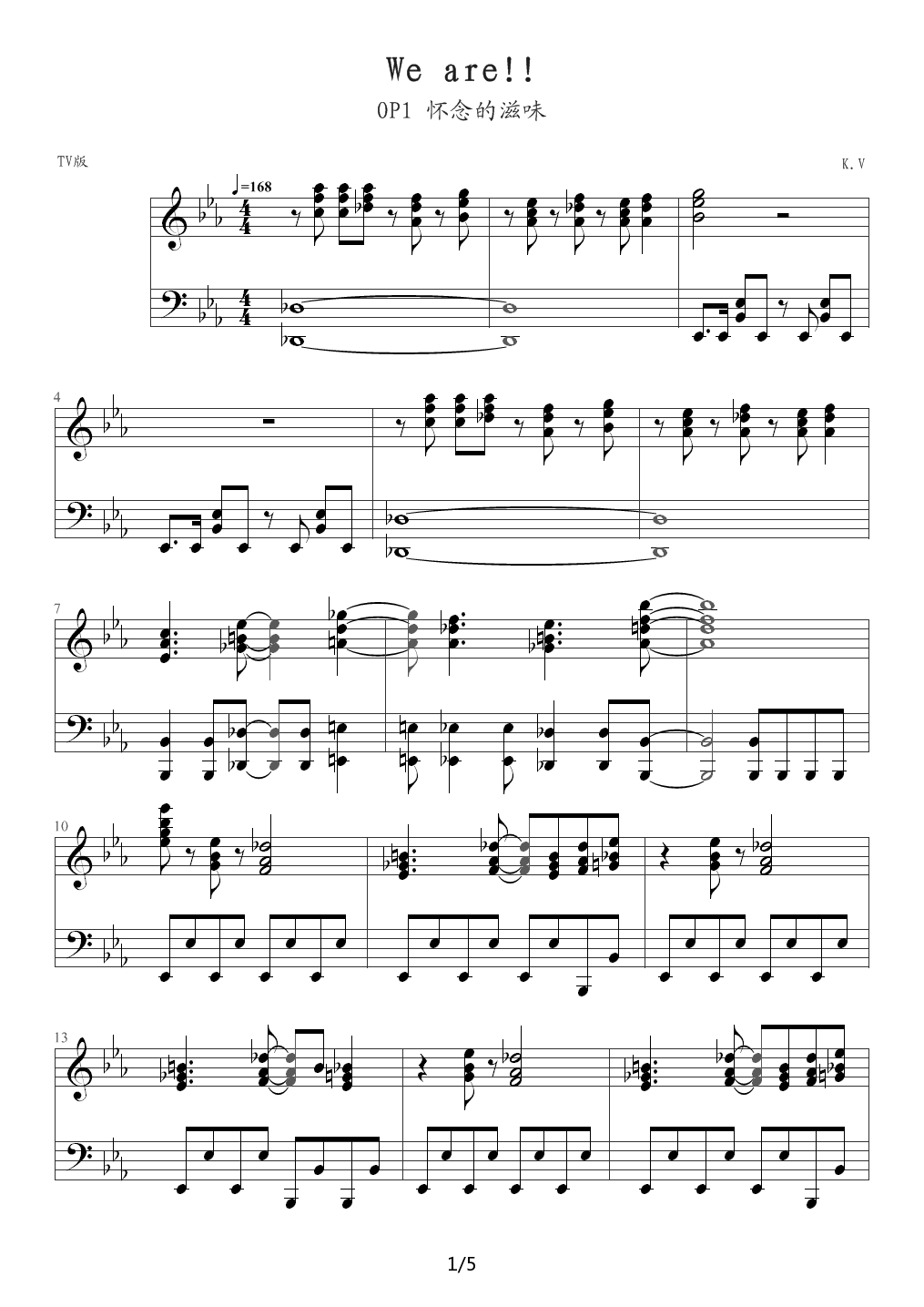 > We are 海贼王OP1 降E调