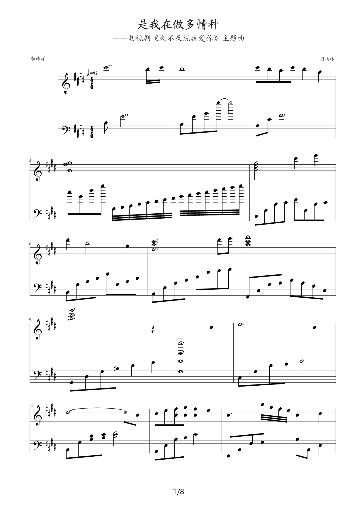 > 是我在做多情种 原版 E调
