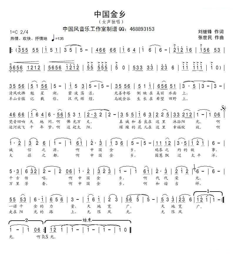 - [歌谱] 放歌鲁西南