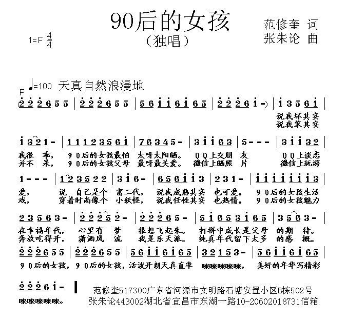 - [歌谱] 90后女孩