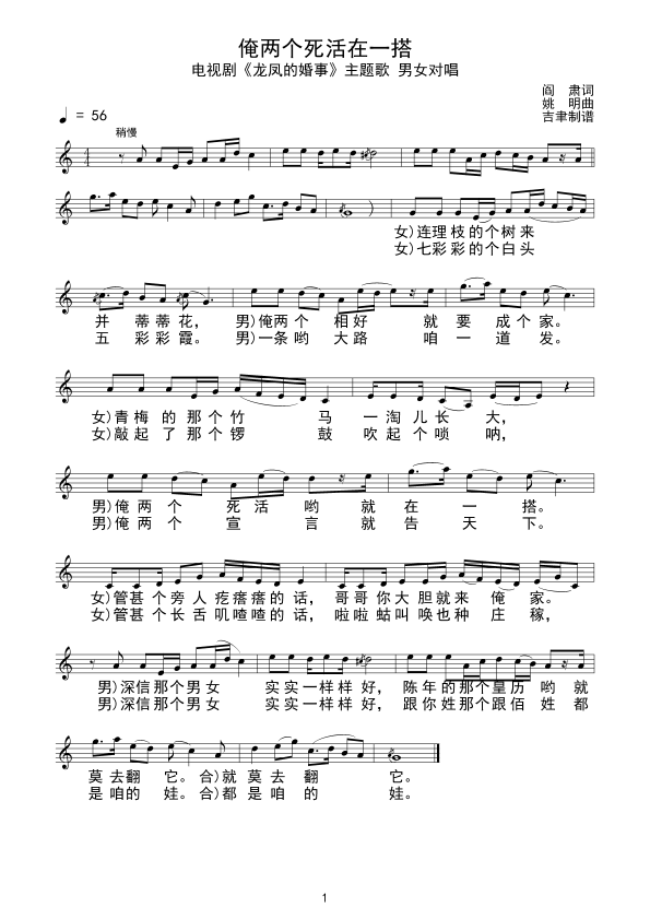 俺两个死活在一搭 电视剧 龙凤乡的婚事 主题曲
