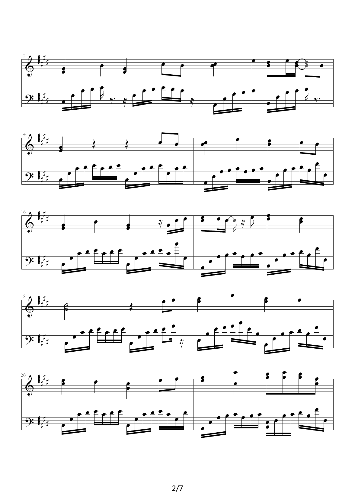 甜甜的 钢琴版 E调