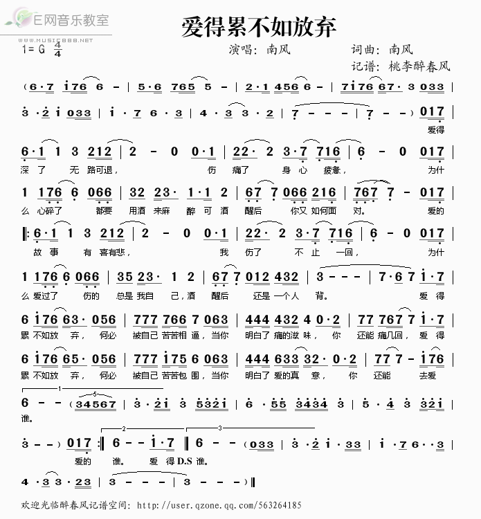 简谱网 > 歌谱 > 爱得累不如放弃 南风