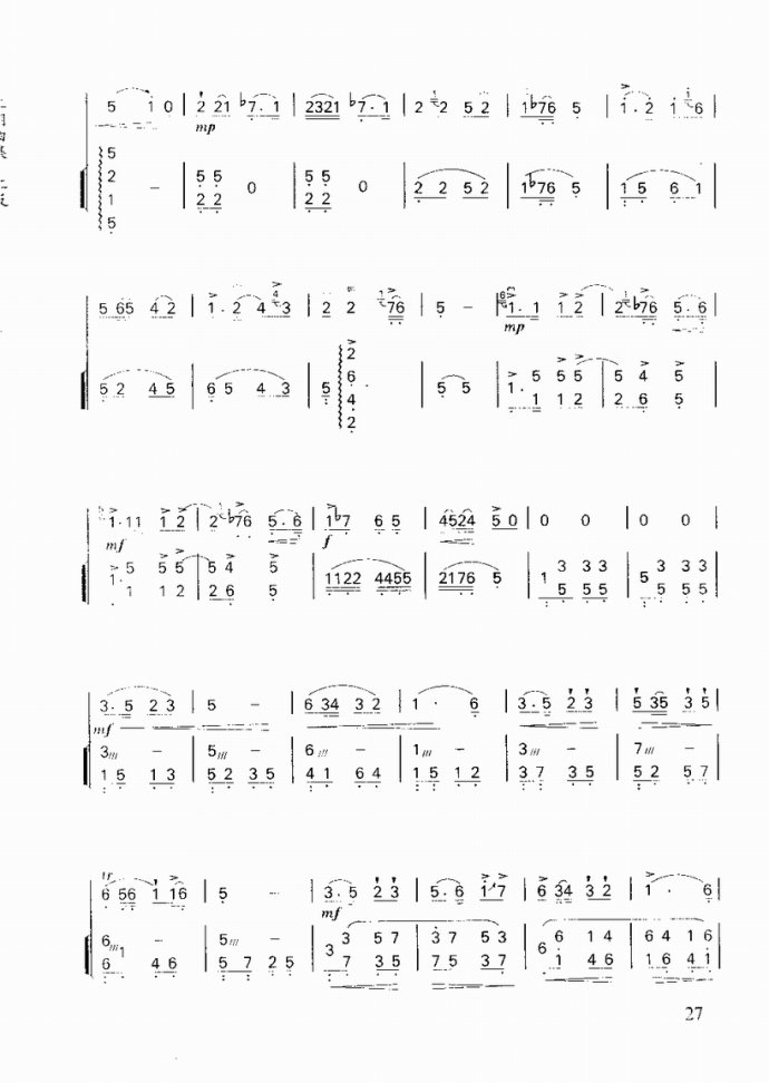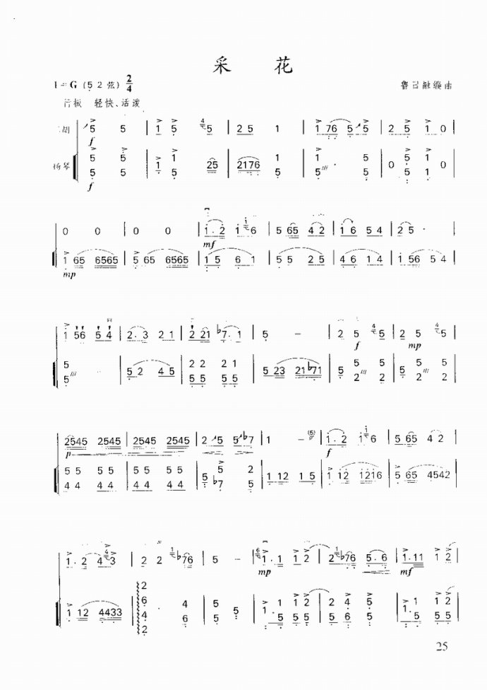 - [二胡谱,歌谱,扬琴谱] 采花 扬琴 二胡