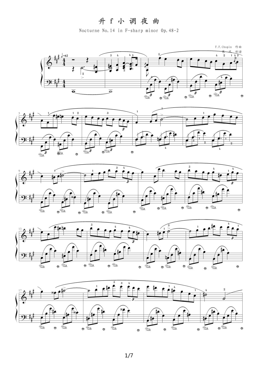 > 升f小调夜曲 Op 48 No 2 肖邦第14号夜曲