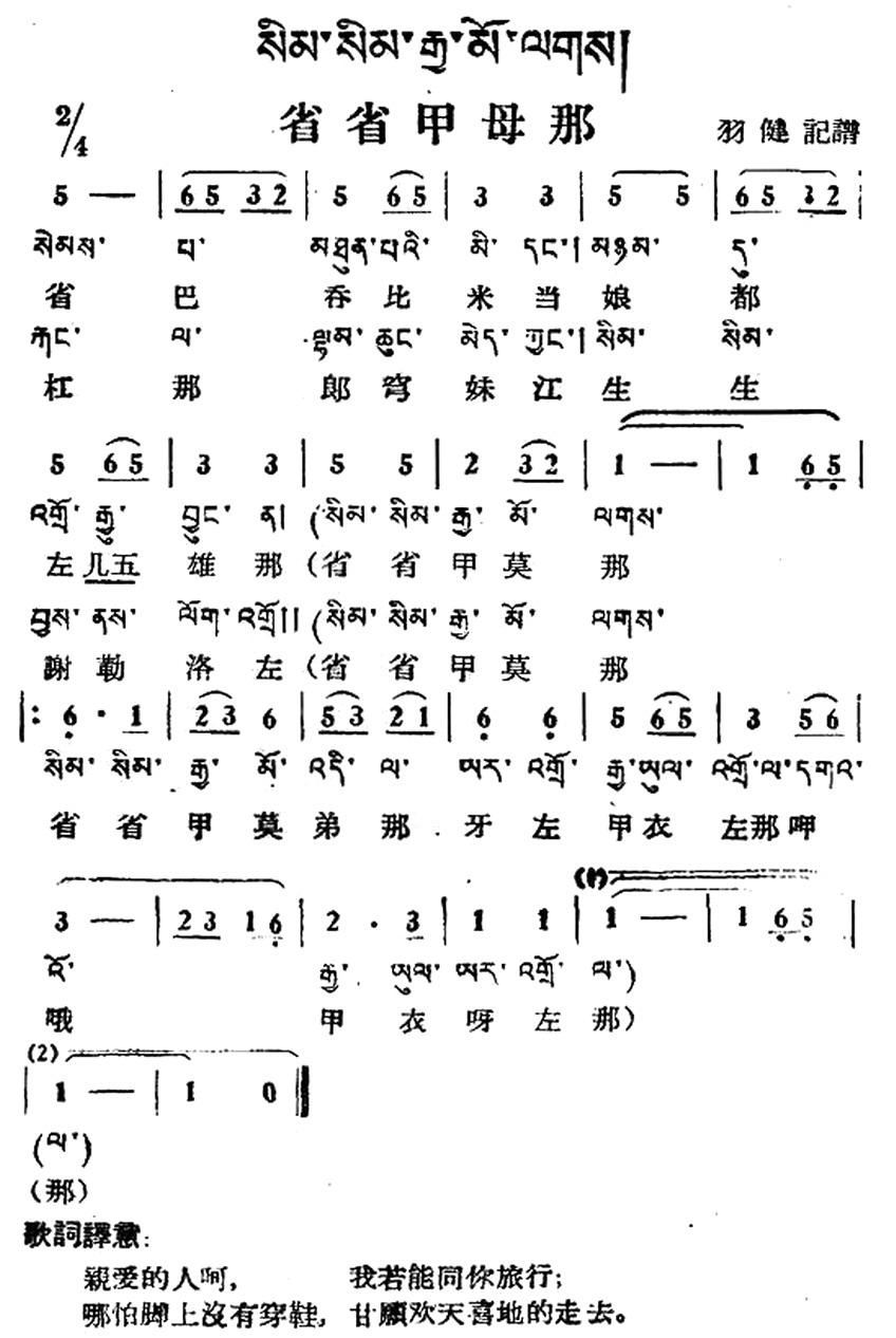 省省甲母那 藏族民歌 藏文及音译版