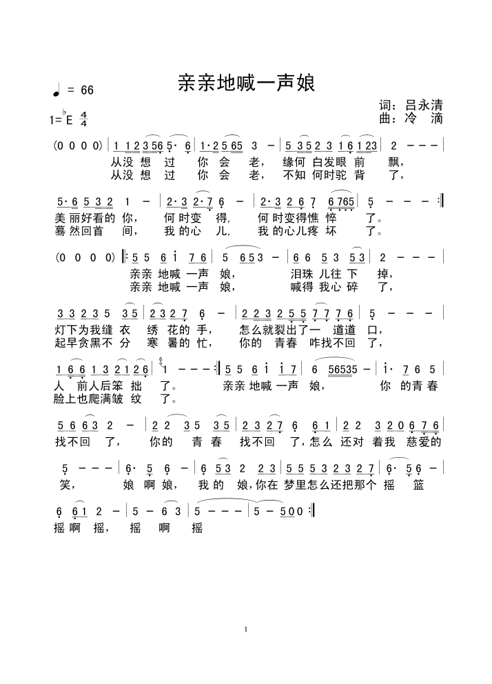 简谱网 > 歌谱 > 亲亲地喊一声娘