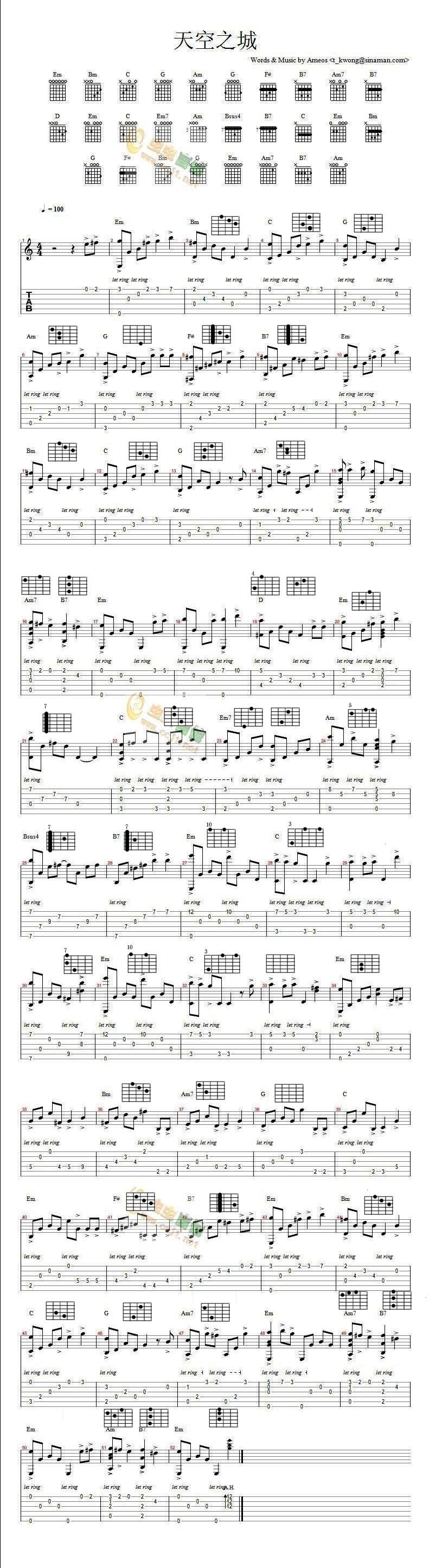 - [吉他谱] 天空之城