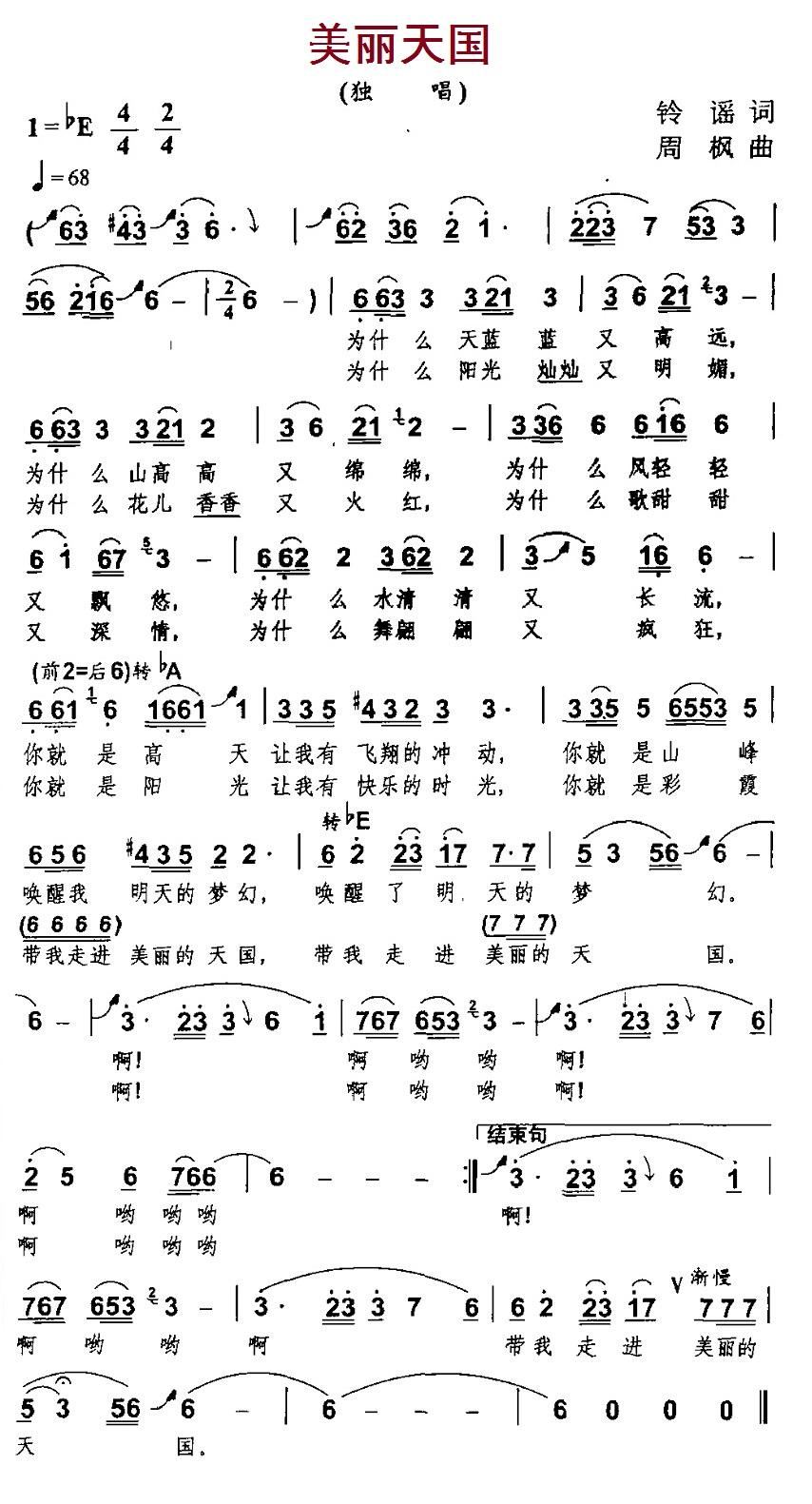 - [歌谱] 美丽天国