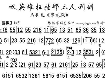 > 叹英雄枉挂那三尺利剑 串龙珠 选段 琴谱 京剧唱谱