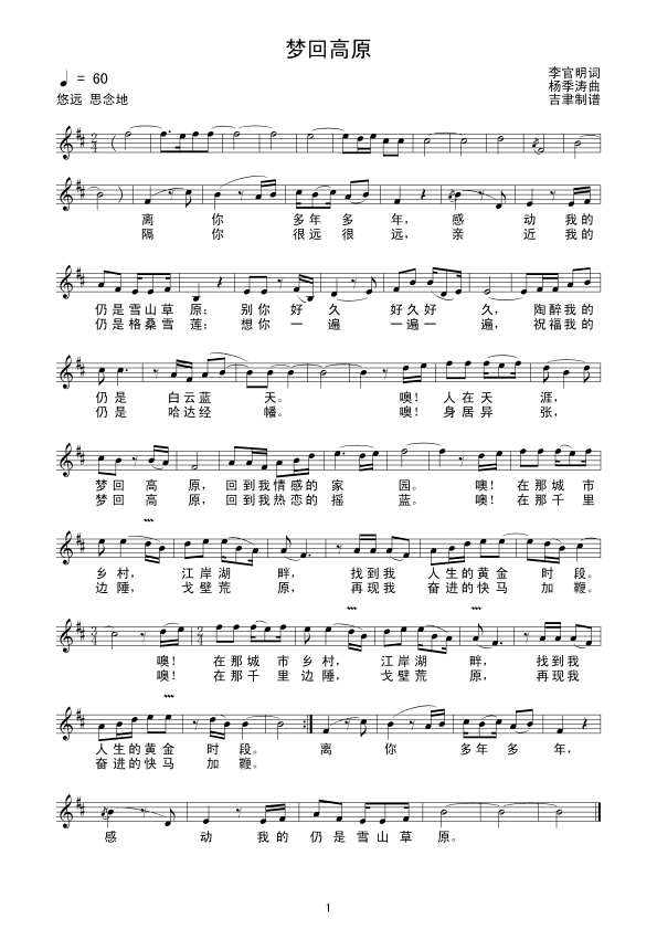 - [二胡谱,歌谱] 心在高原 梦在草原