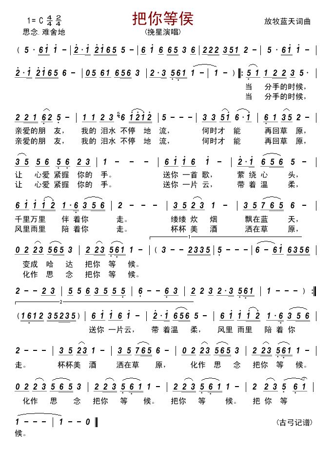 - [歌谱] 把你等侯