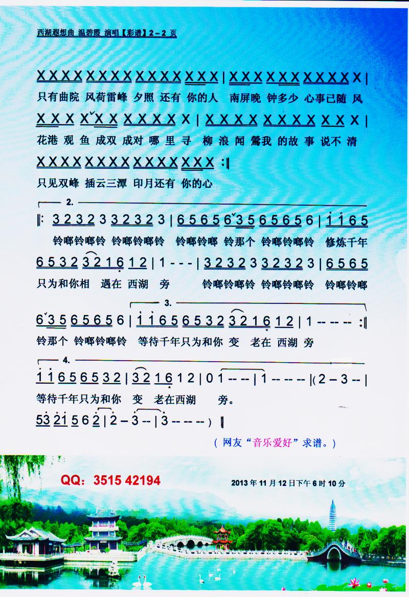 - [歌谱] 西湖遐想曲 彩谱