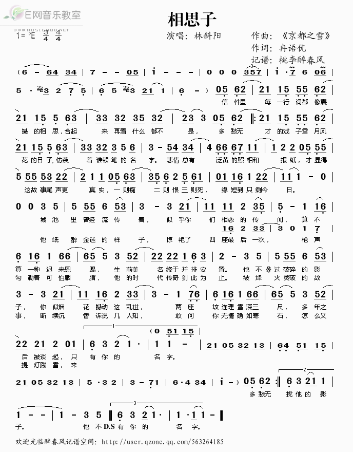 - [歌谱] 相思子 林斜阳