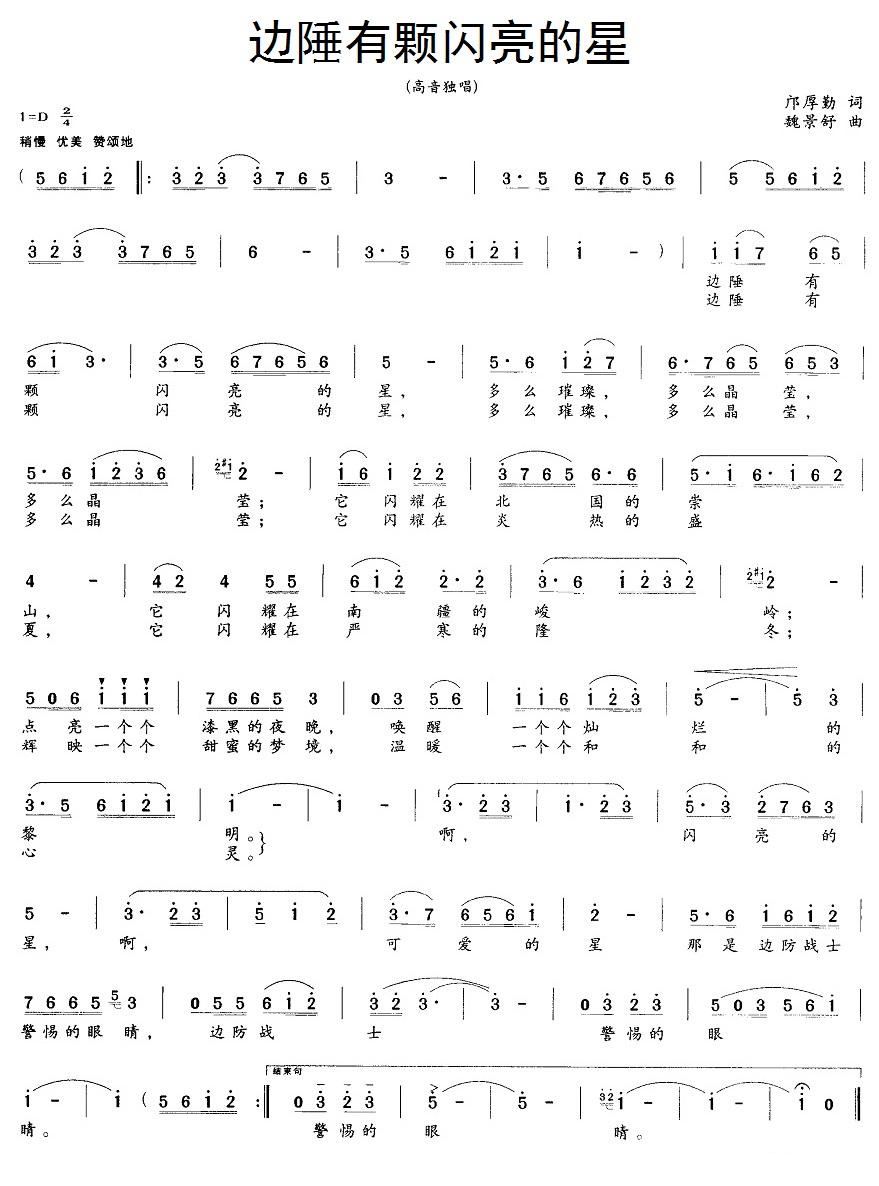 天边有颗闪亮的星 二部合唱 前半部ZN编