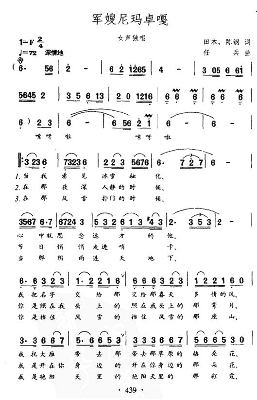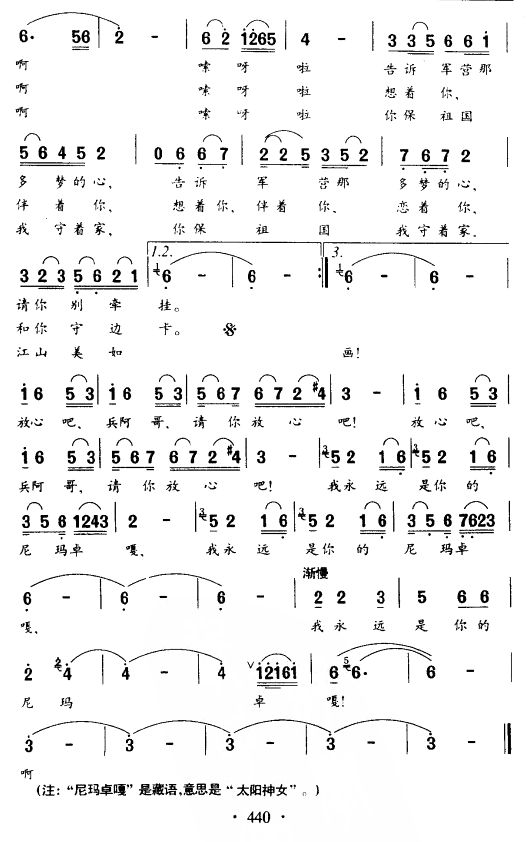 - [歌谱] 军嫂尼玛卓嘎
