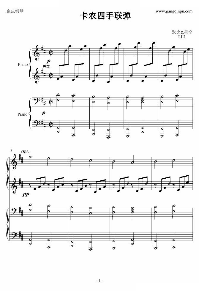 > 卡农 四手联弹