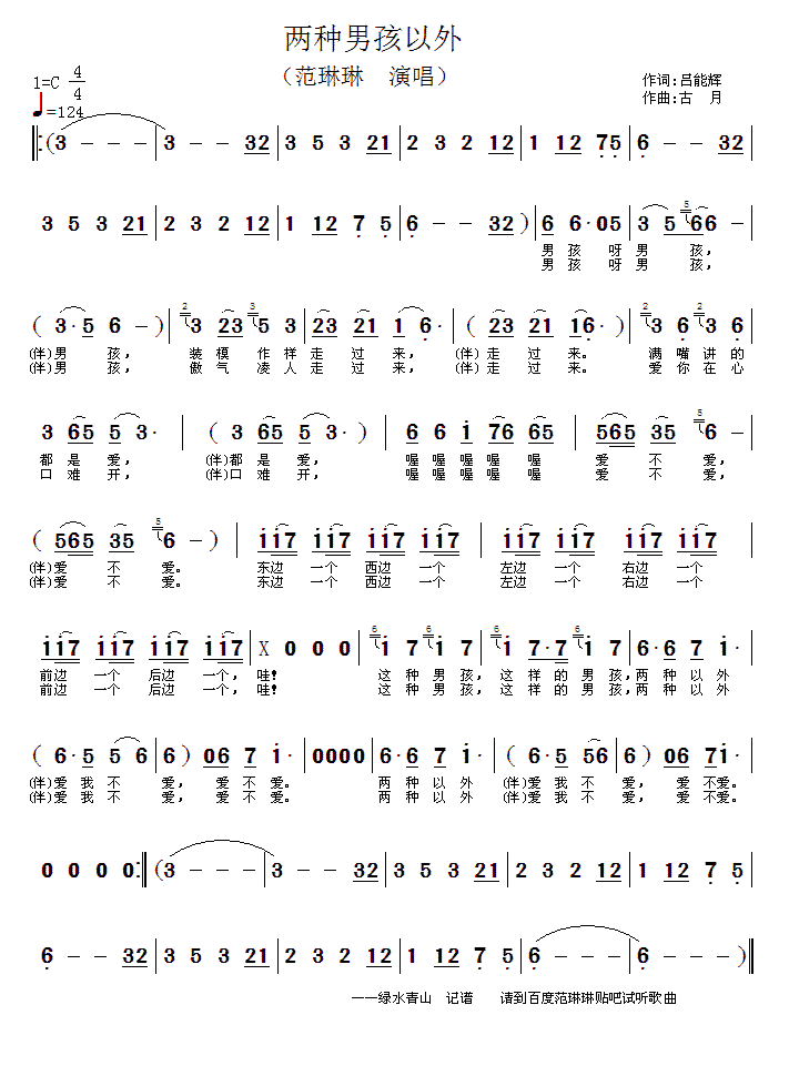 - [歌谱] 两种男孩以外