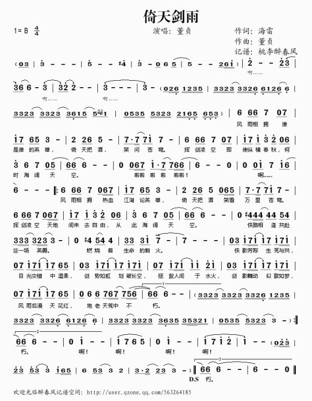 - [歌谱] 倚天剑雨