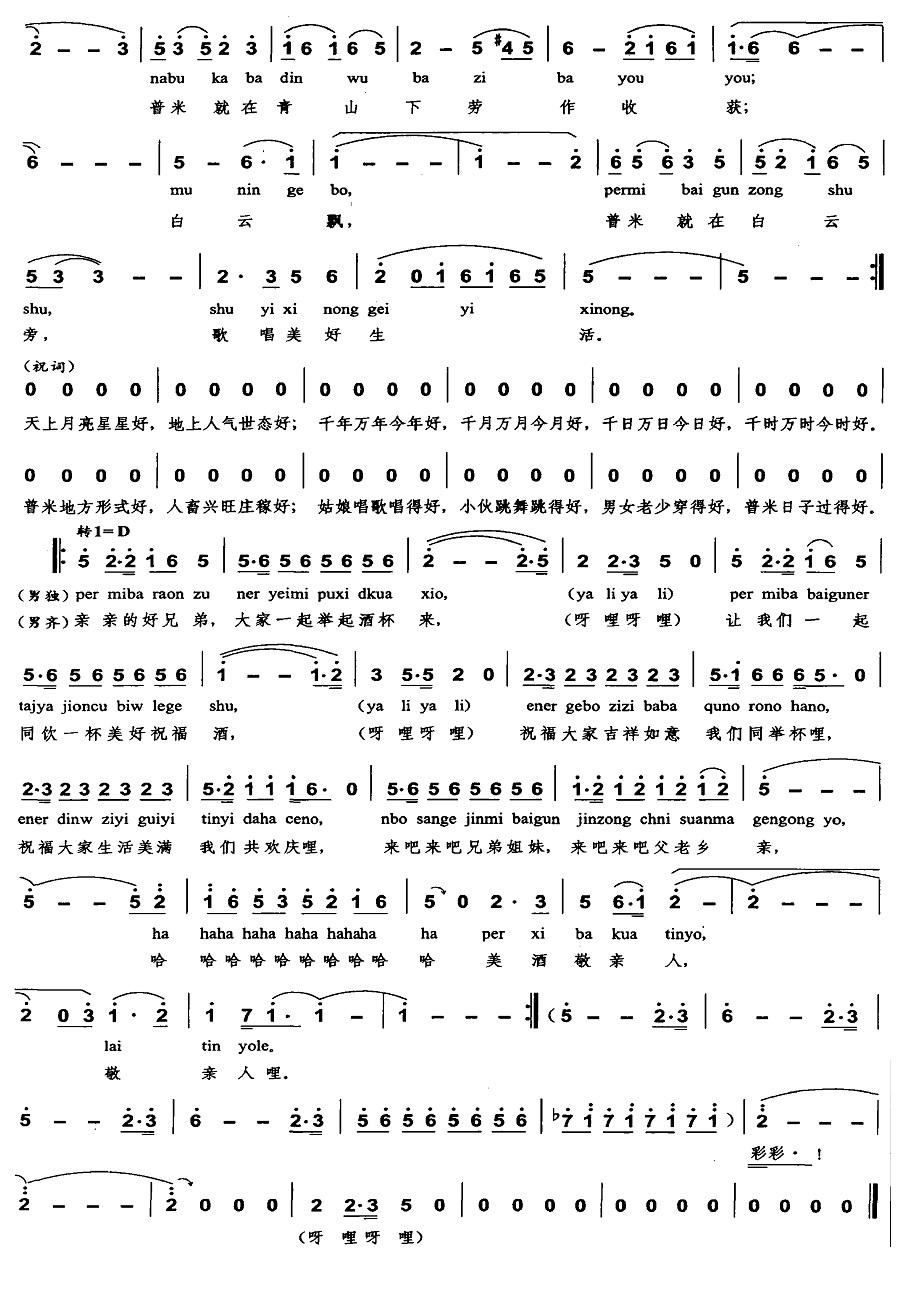 - [歌谱] 普米酒歌