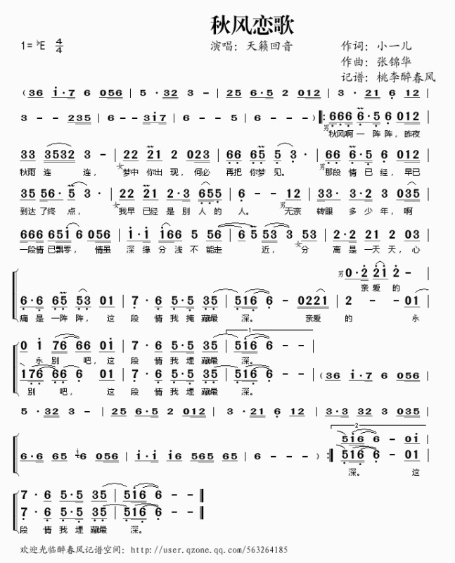 - [歌谱] 秋风恋歌 天籁回音