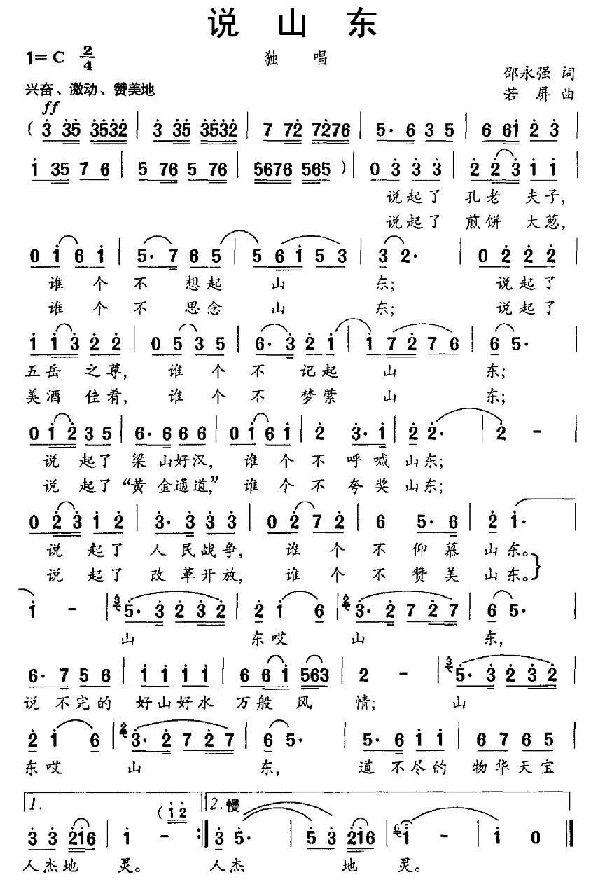 - [歌谱] 说山东