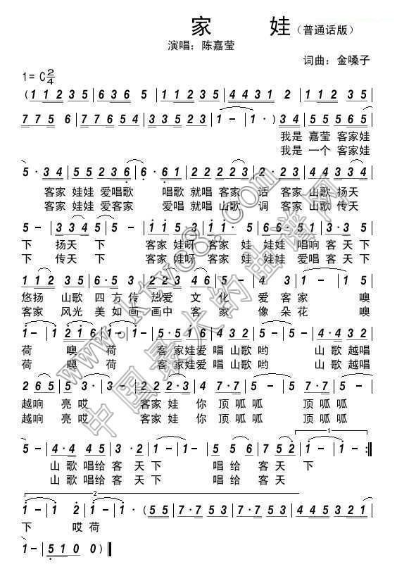 - [歌谱] 客家娃
