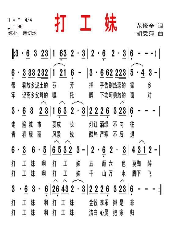 - [歌谱] 打工妹