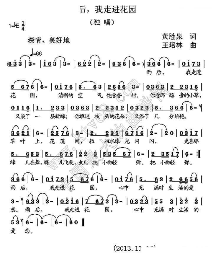 - [歌谱] 雨后 我走进花园