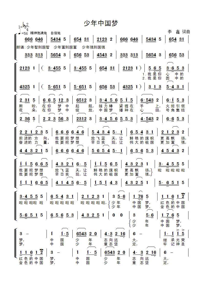- [歌谱] 少年梦 中国梦