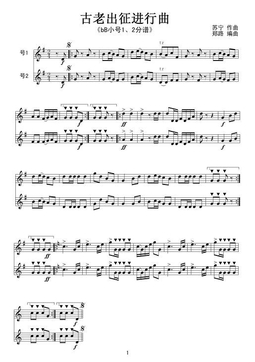 - [短号谱,分谱,总谱] 古老出征进行曲 bB短号1 2
