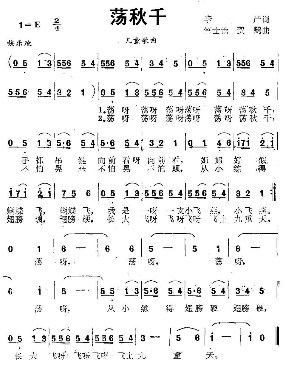 - [单簧管谱,电子琴谱,口琴谱,小号谱] 电子琴 荡秋千