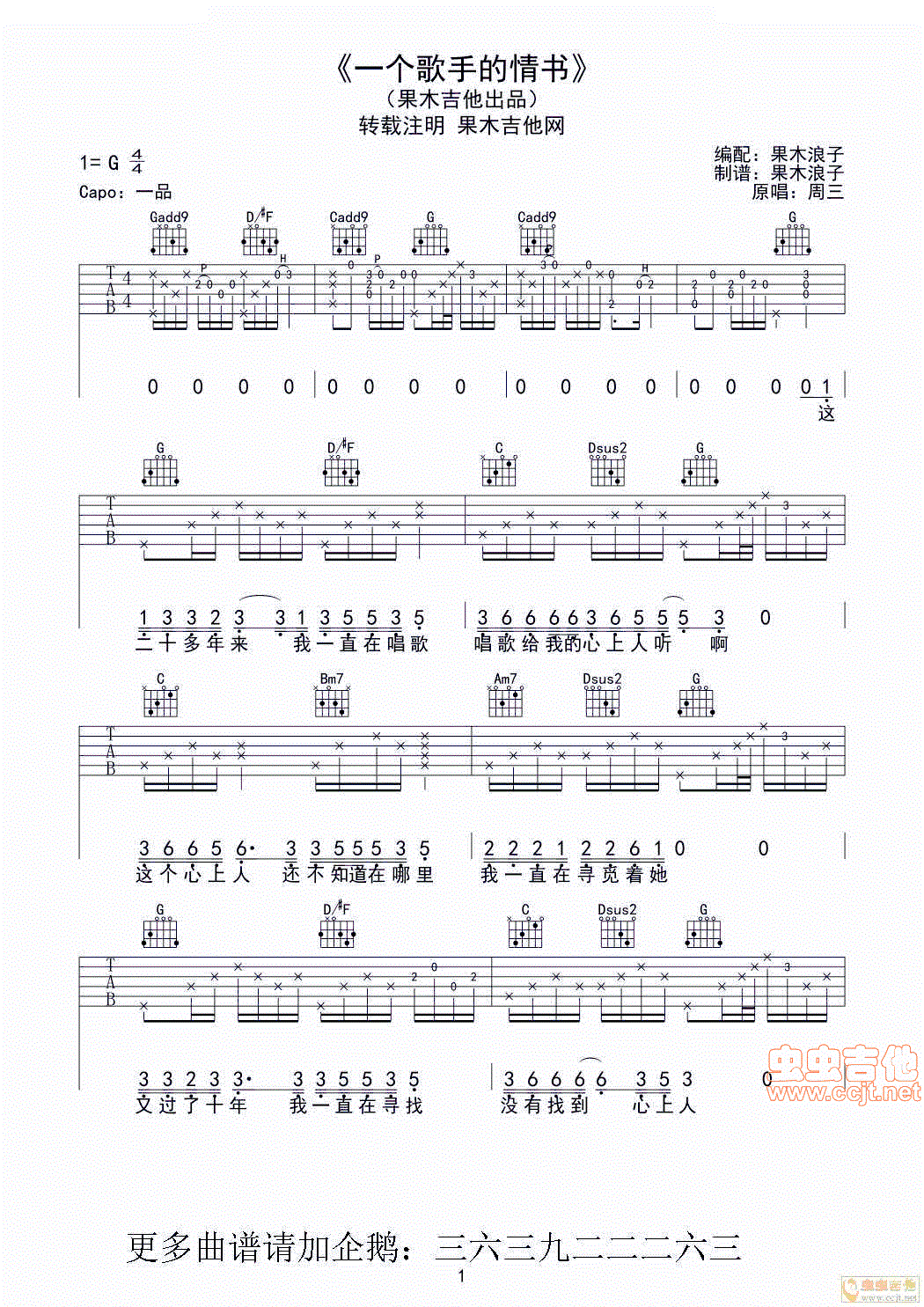 - [歌谱] 我是一个原创歌手