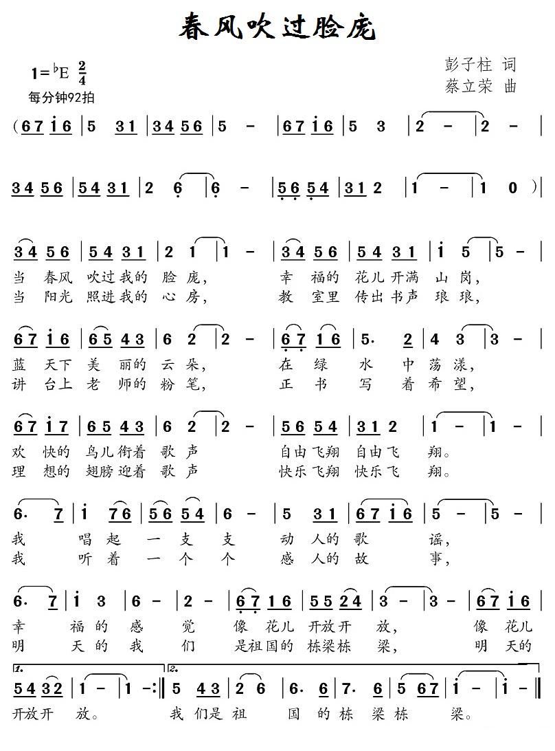 - [歌谱] 春风吹过的地方 赵恕心曲