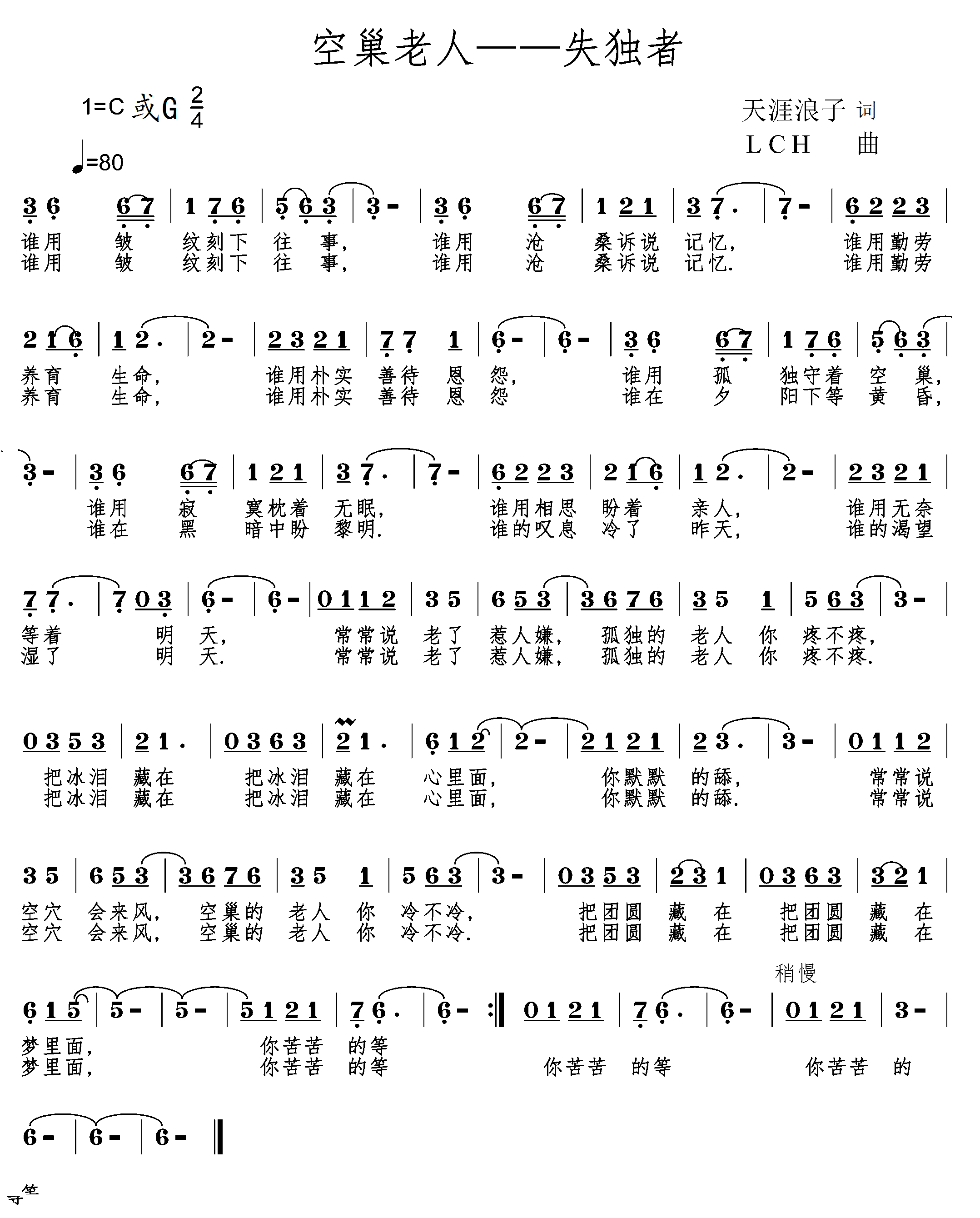 - [歌谱] 空巢