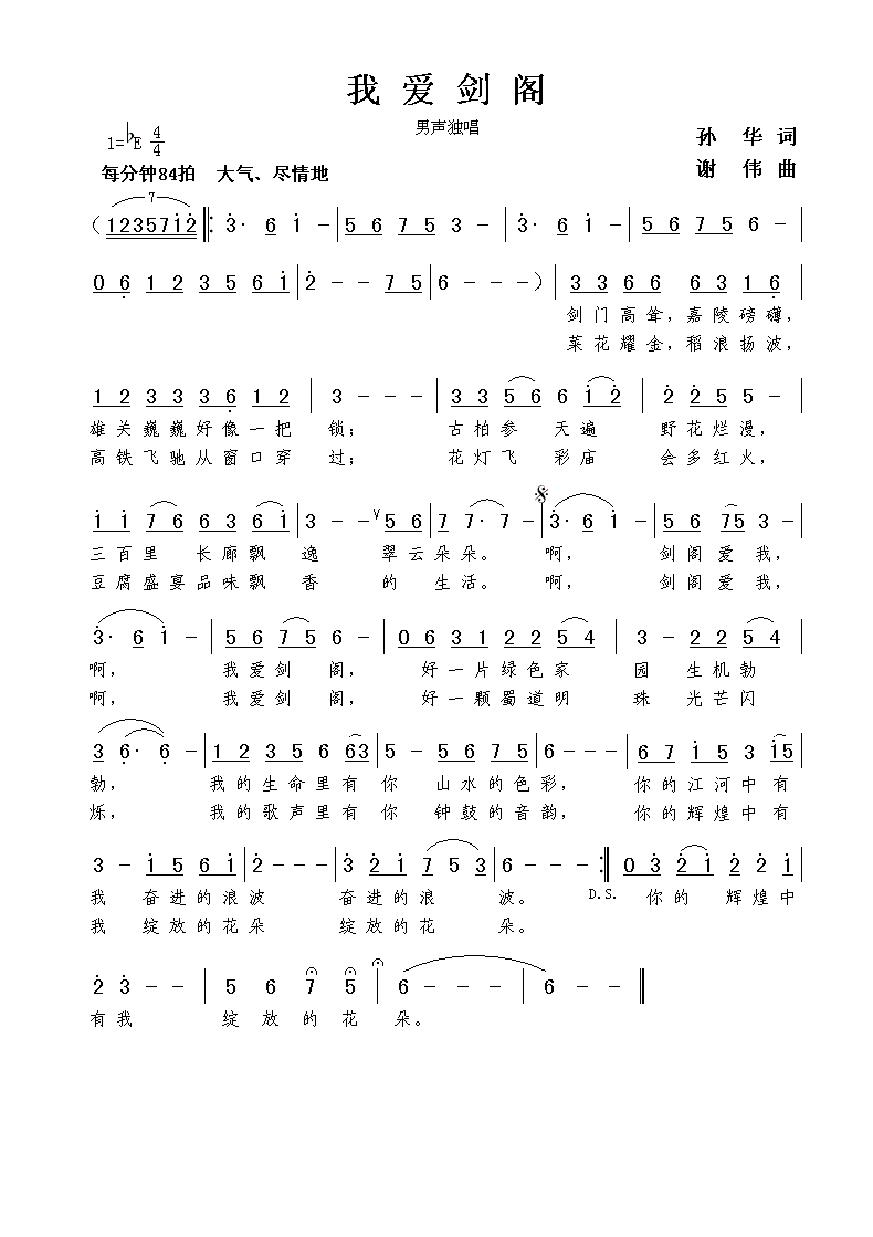 - [歌谱] 美丽天祝我可爱的家 女声独唱
