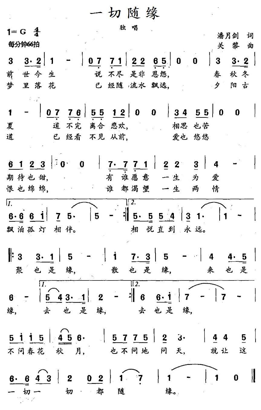 - [歌谱] 一切随缘