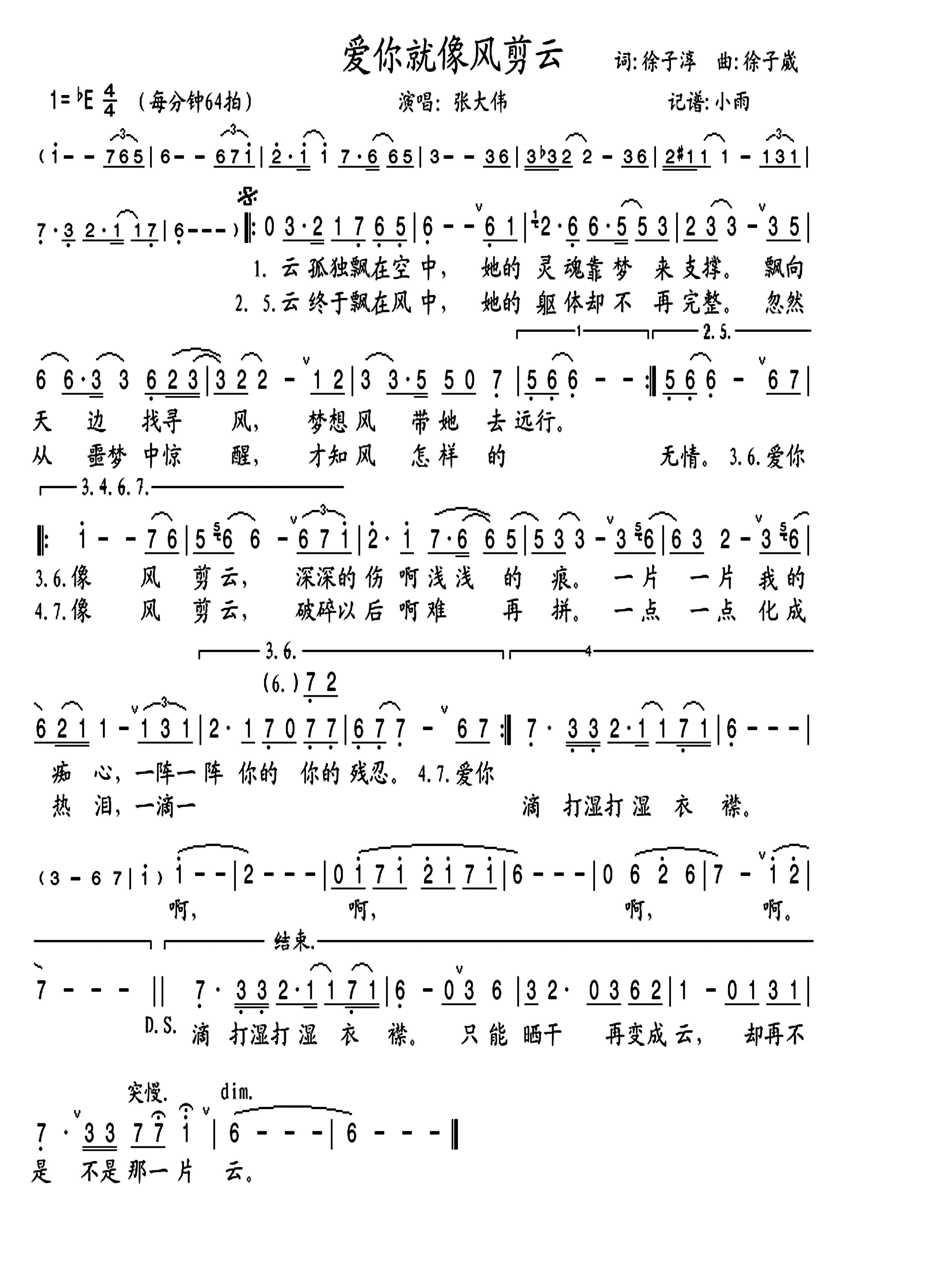 - [歌谱] 爱你就像风剪云