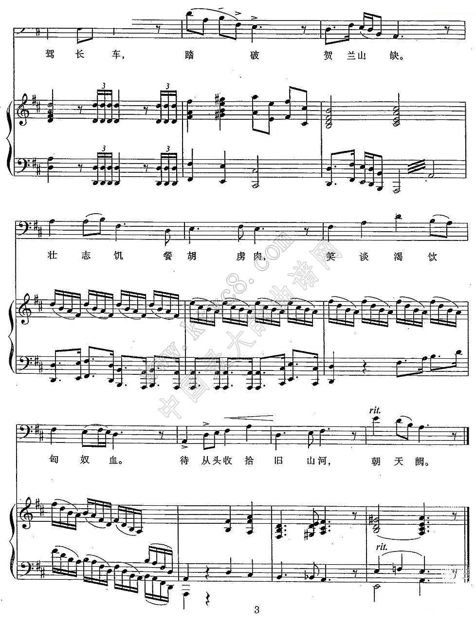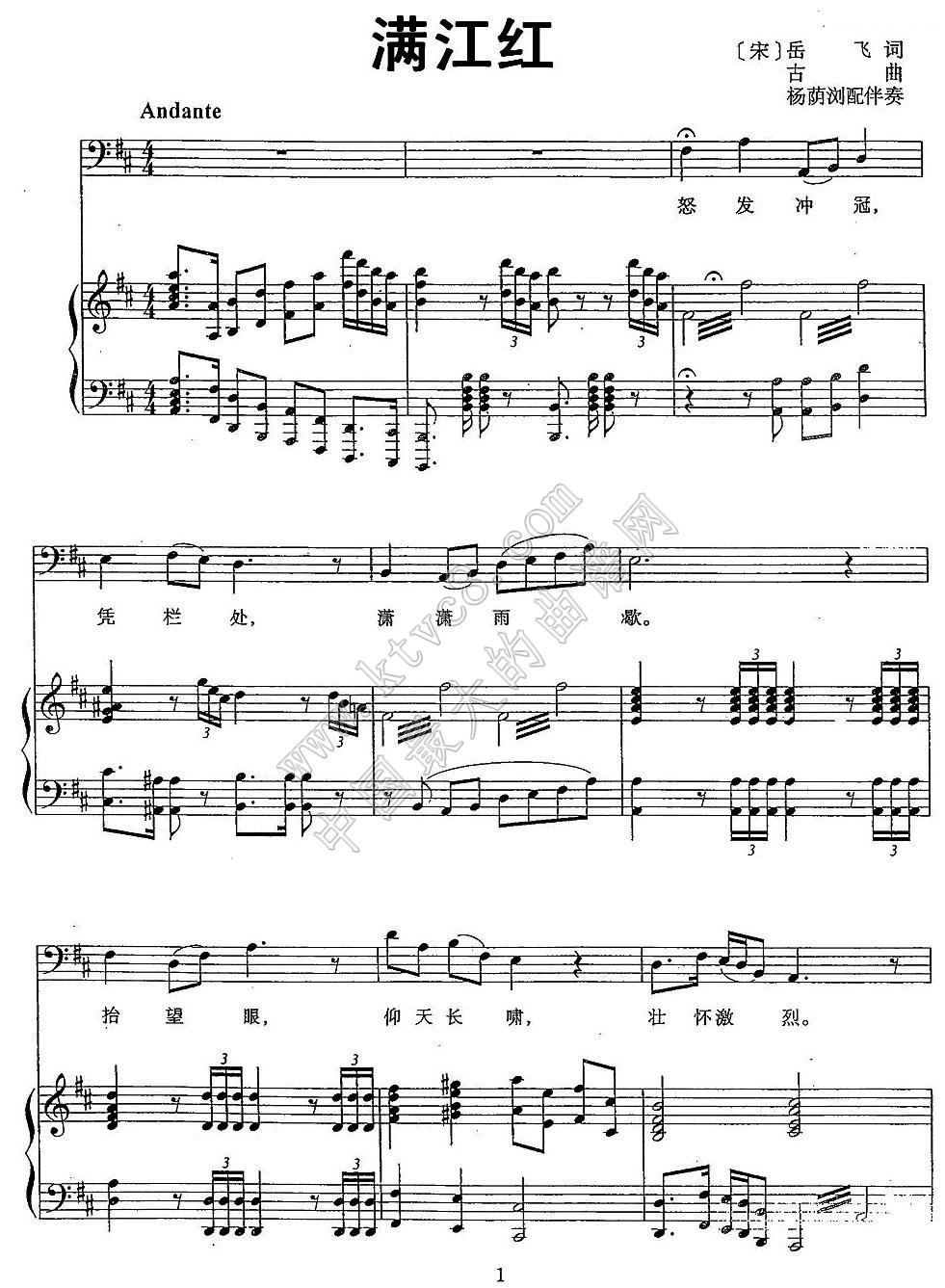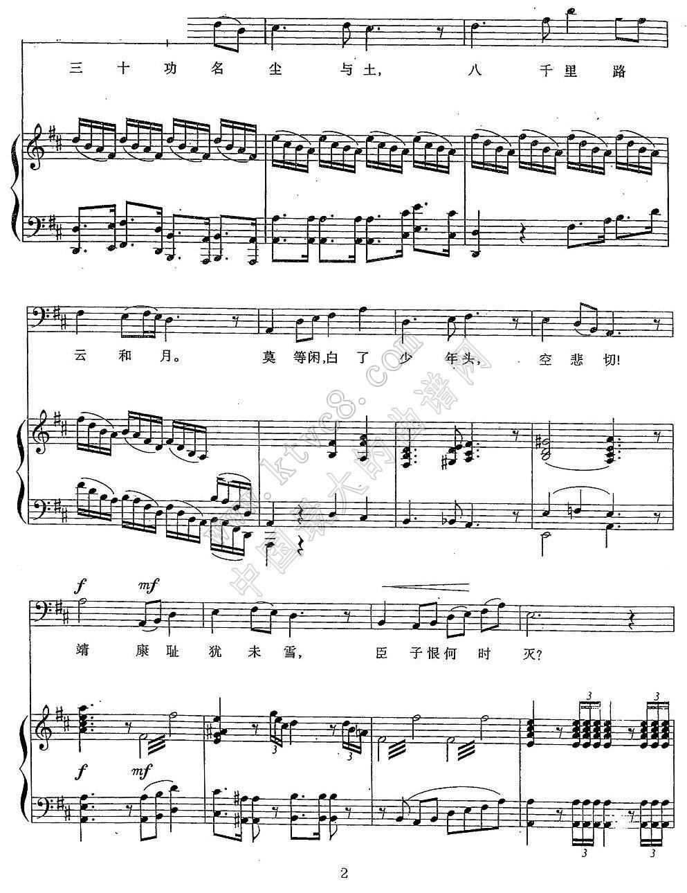 - [钢琴谱] 宋 岳飞 满江红 附钢琴伴奏
