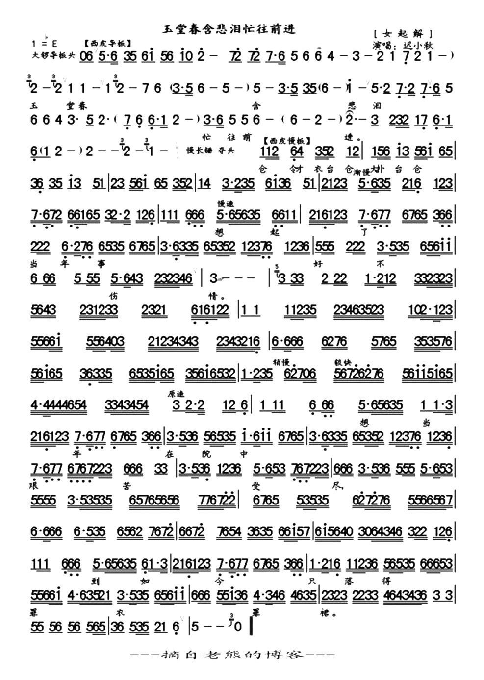 > 玉堂春含悲泪忙往前进 玉堂春 起解 迟小秋唱段 琴谱