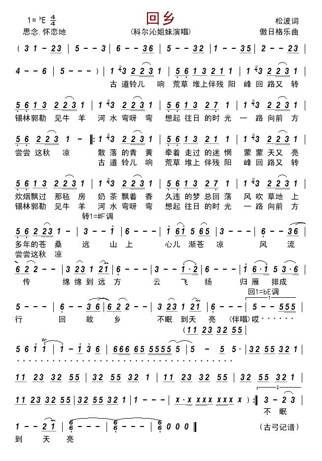 - [歌谱] 倦鸟归
