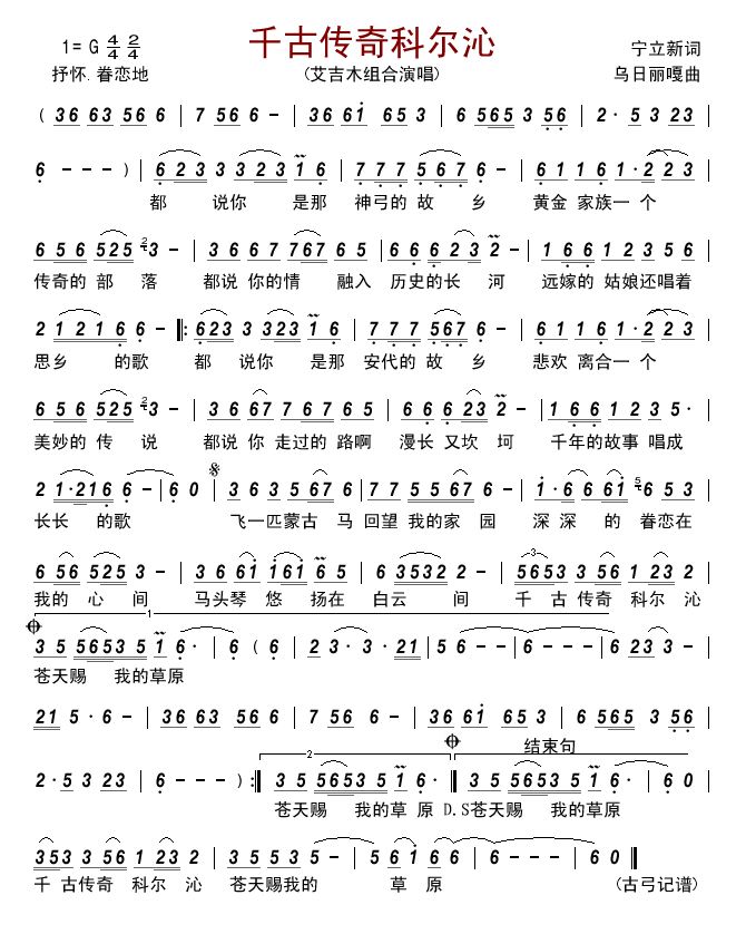 - [歌谱] 千古佳话