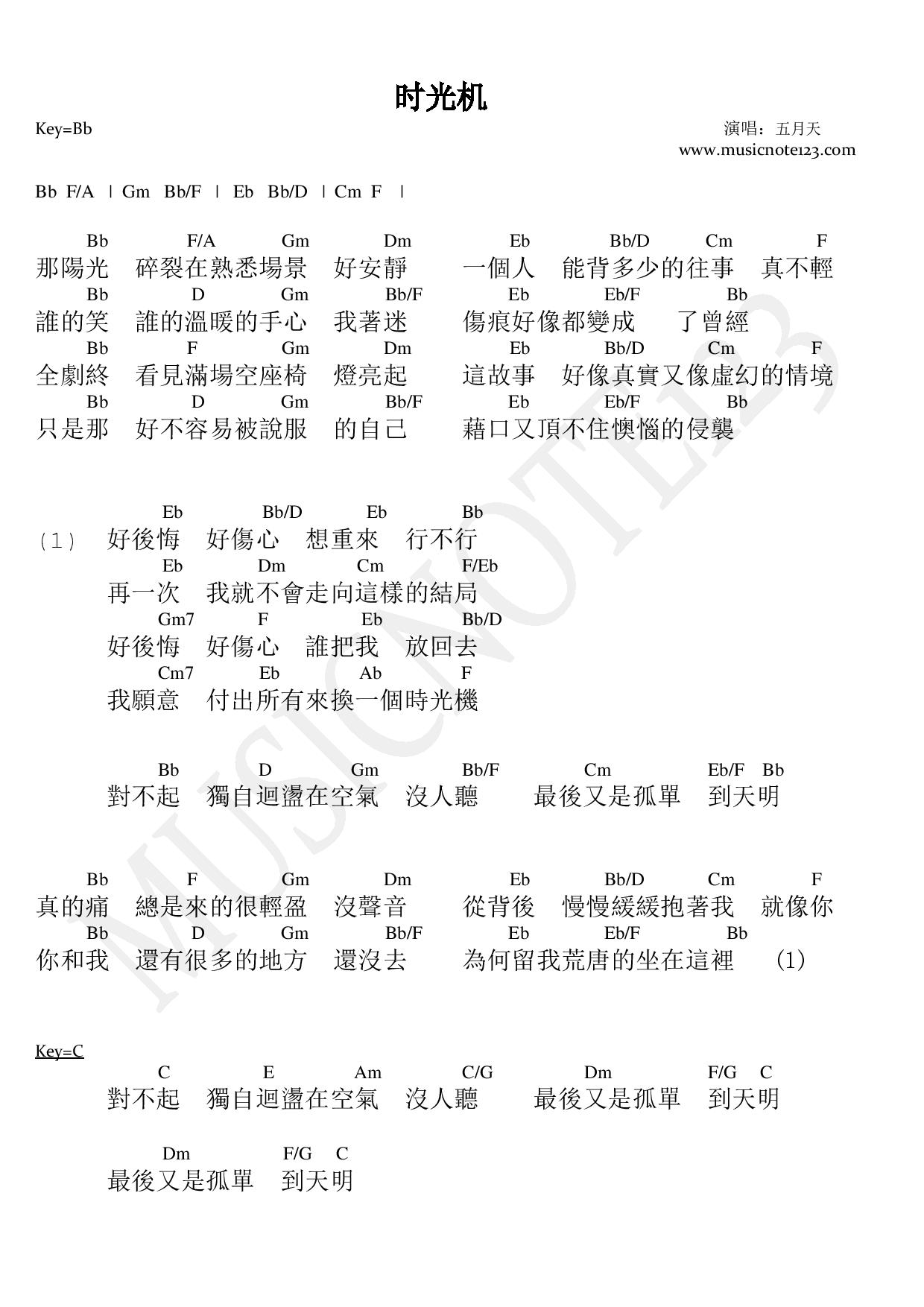 - [钢琴谱] 时光机 纯钢琴弹唱版
